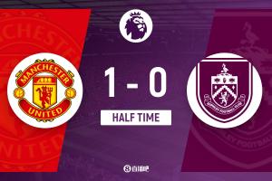 半场结束,曼联暂1-0伯恩利。