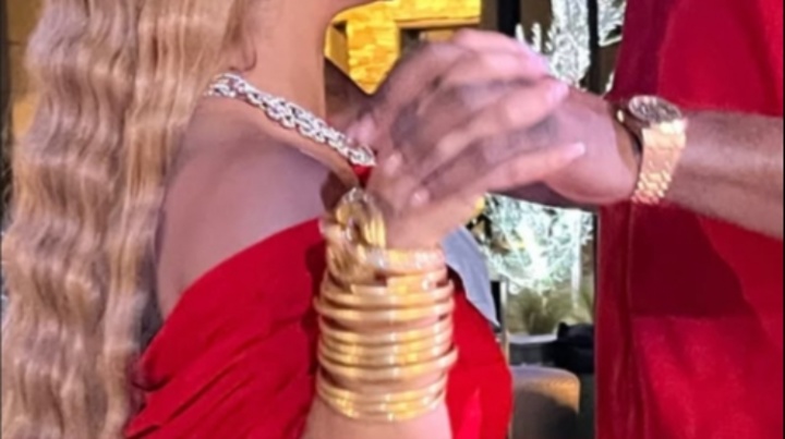 派姐的手腕上戴着数十个金环。