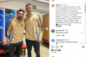 体育资讯9月9日讯 皇马16岁门将卡斯特劳随阿根廷国家队训练,他在社交媒体上晒出与梅西的合照。