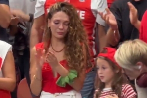 体育资讯9月16日讯 男篮欧锦赛决赛土耳其83-88不敌德国,赛后奥斯曼妻娇妻场边洒泪,女儿也情绪低落,奥斯曼赶紧上前安慰。