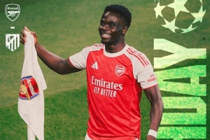 赛前,阿森纳官方晒出海报,为本场比赛预热。萨卡单人出镜,海报左上角为对阵双方队徽,右上角为欧冠标志。