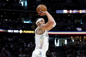 2024-25赛季,戈登的三分命中率为43.6%,而他生涯的三分命中率为33.1%。