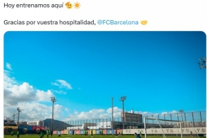 体育资讯11月3日讯 西甲埃尔切官推晒出一张球队借用巴萨训练基地训练的照片,配文写道:“今天我们在这里训练,感谢巴萨俱乐部的慷慨🤝”