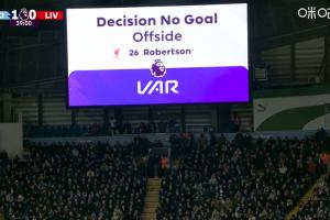 体育资讯11月12日讯 曼城3-0利物浦比赛的第38分钟,范戴克头球破门,但VAR判定罗伯逊越位位置干扰,进球被判无效。
