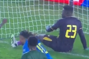 第91分钟,民主刚果由后卫姆贝巴在角球中攻破球门,奥纳纳伸脚但是没能挡住皮球打进近角,被进球后瘫坐在地↓