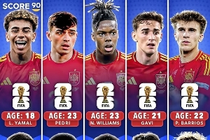 前锋:亚马尔18岁、尼科23岁、巴埃纳24岁