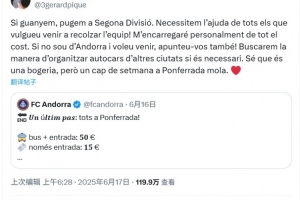 皮克社媒写道:“如果我们赢了,就能升入西乙联赛,我们需要所有想来支持球队的人助我们一臂之力。所有费用我个人全包!就算你不是安道尔人,只要想来,也请报名!如果需要的话,我们会想办法从其他城市组织大巴。我知道这很疯狂,但周末去蓬费拉达玩一趟超酷的。❤️”